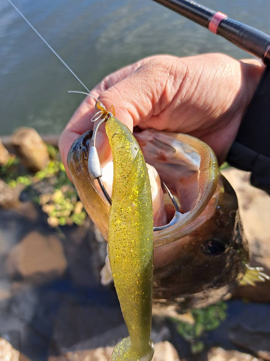 The shad tail creates unique vibrations.