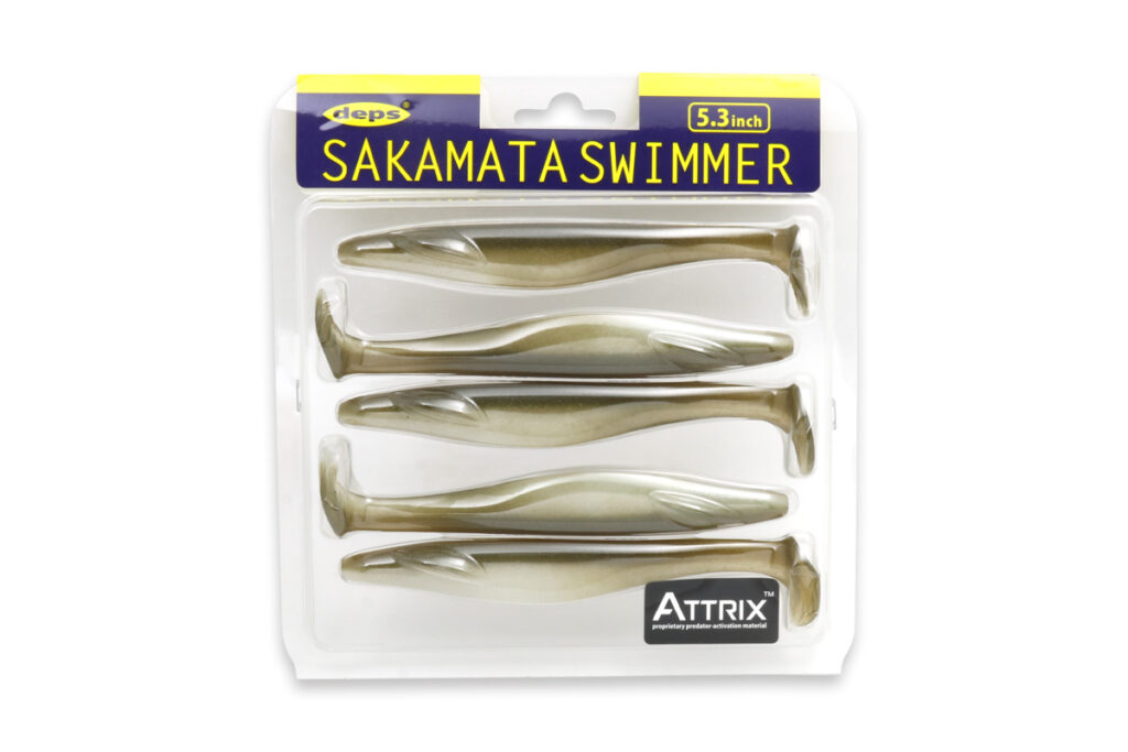The Sakamata Swimmer is a shad-tail swimbait with a Sakamata body, designed for swimming.